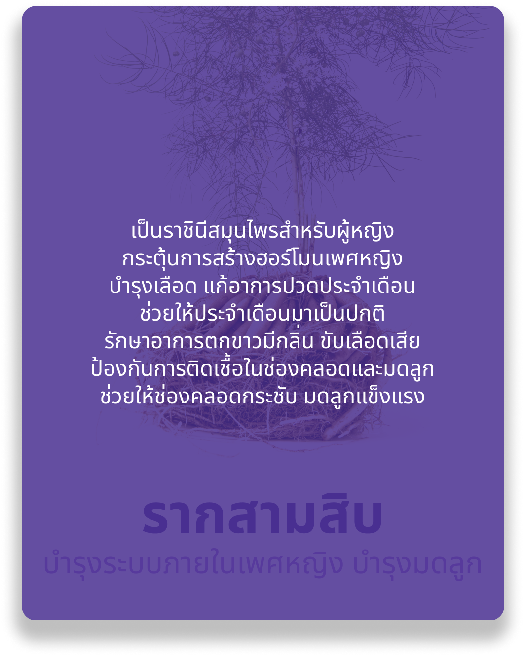 1. รากสามสิบ ช่วยแก้ปัญหาเกี่ยวกับประจำเดือน บำรุงมดลูก ทำให้ผิวพรรณผ่องใส