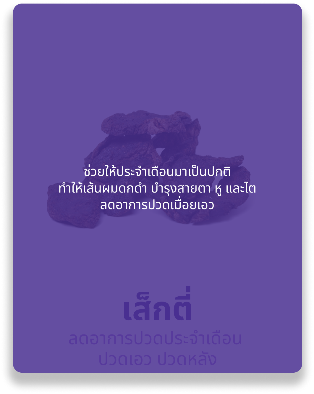 2. เส็กตี่ เป็นยาบำรุงเลือด ลดอาการปวดเอว ปวดหลัง